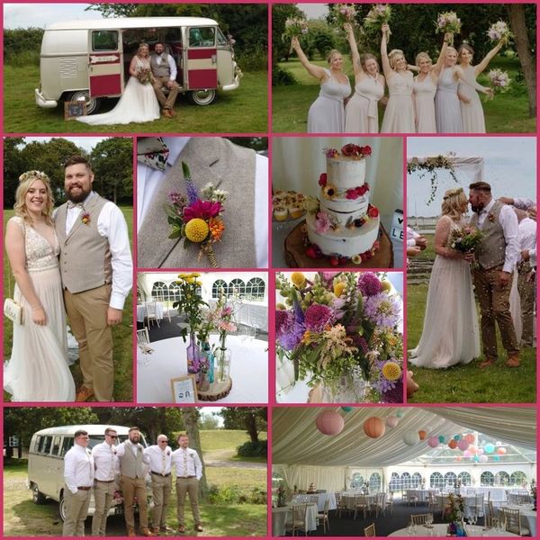 Kim & Tom got married!!!! After Covid meant they had to delay this wonderful couple finally got hitched on Saturday and it was well worth the wait!!! The sun shone for the outside ceremony conducted by Kims cousin and then guests enjoyed drinks, canapes and ice cream in the sun while having their photos taken before they headed inside to the stunningly beautiful wedding breakfast room. Thier incredible 4 tier wedding cake was dessert before they partied the night away to a live band! It was totally magical and I will never forget Kim's reaction when she saw the flowers, cake and dining room set up .... definitely a goosebumps moment! Tears all round!!